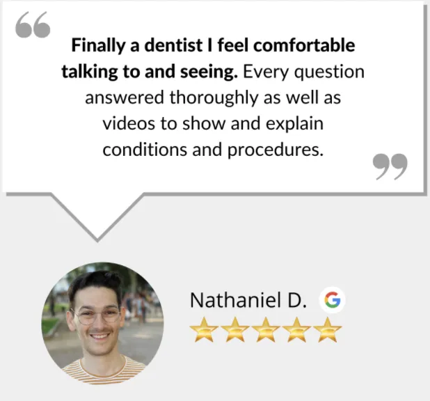 Book an online video consultation with our head dentist. Get a professional diagnosis of your dental issue & recommendations for what to do while you wait for in person care. $49 for a video consultation.